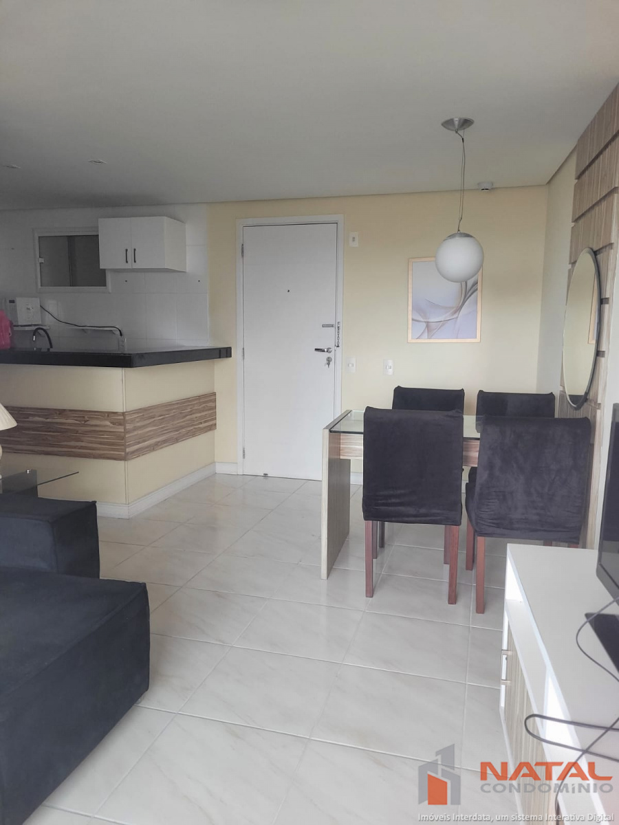Excelente apartamento com 57m², varanda, mobiliado, sala para dois ambientes, 02 quartos sendo 01 suíte e outro com banheiro reversível, cozinha, área de serviço e 01 vaga de garagem coberta.